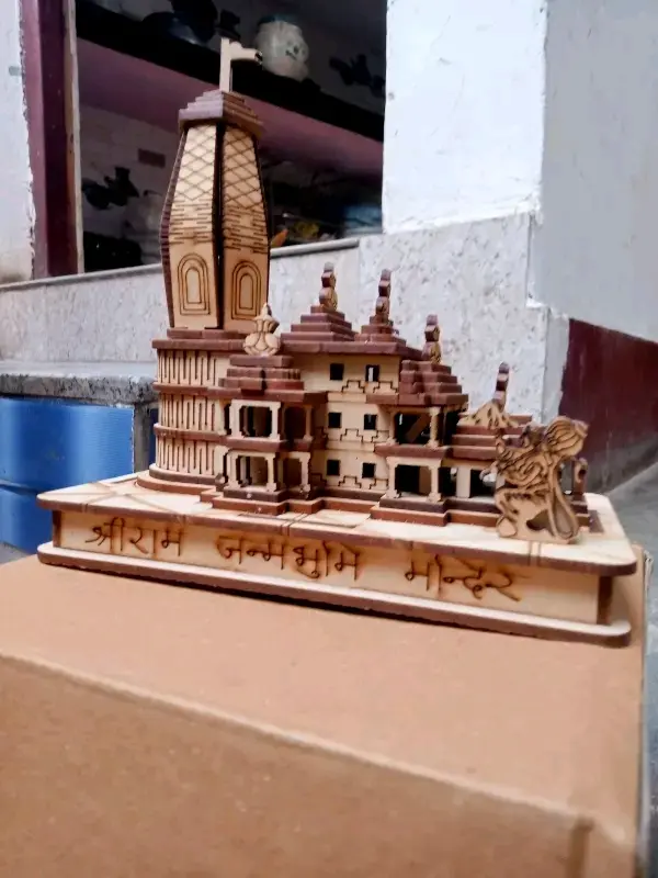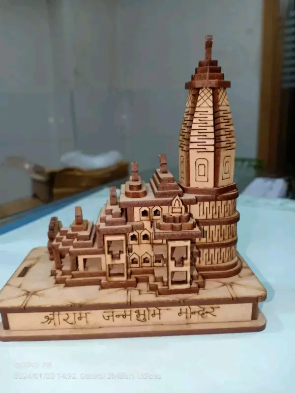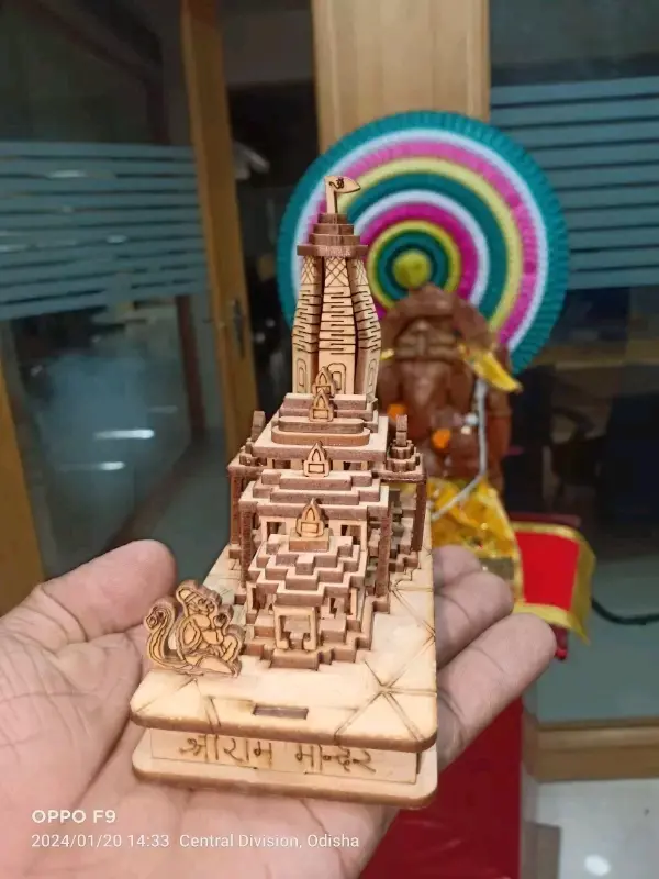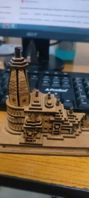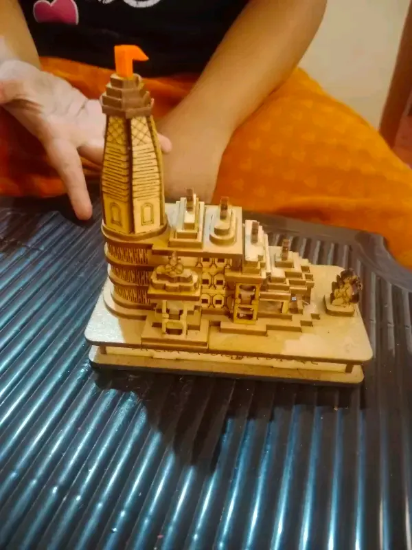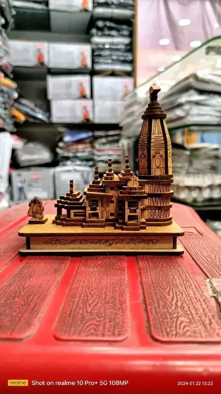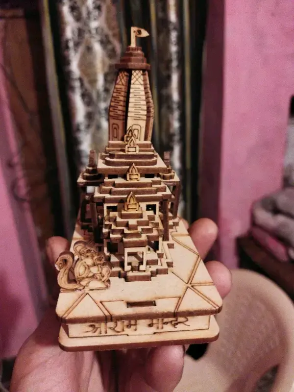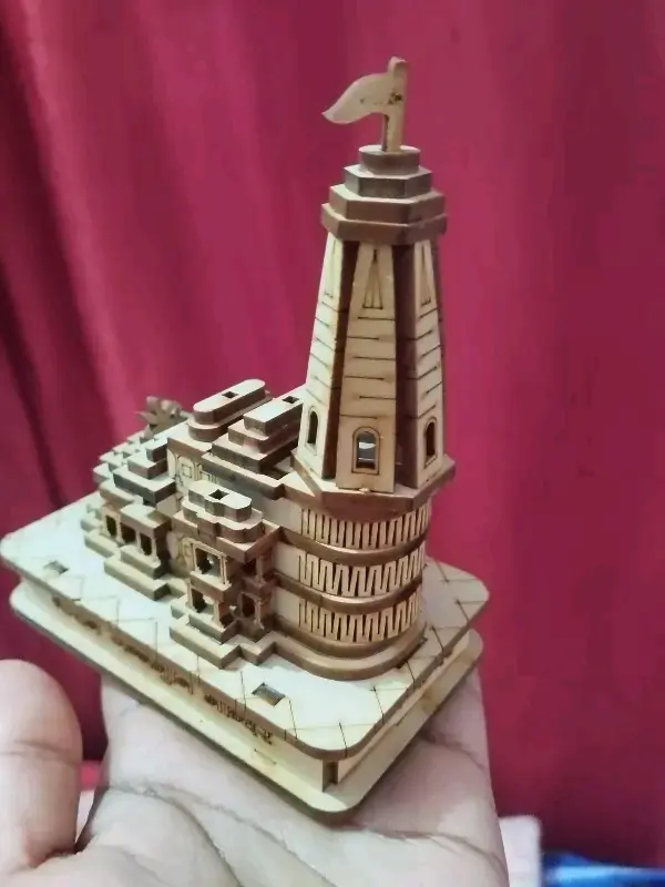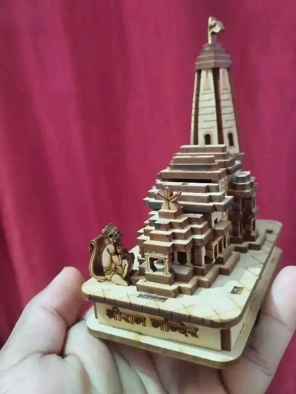 इस 3D लकड़ी के अयोध्या राम मंदिर मॉडल के साथ।