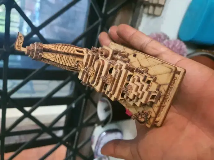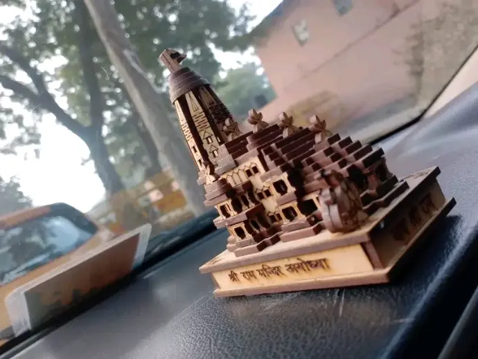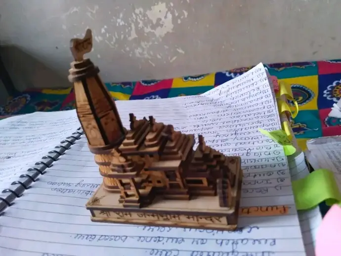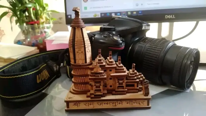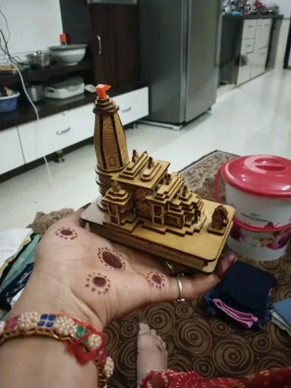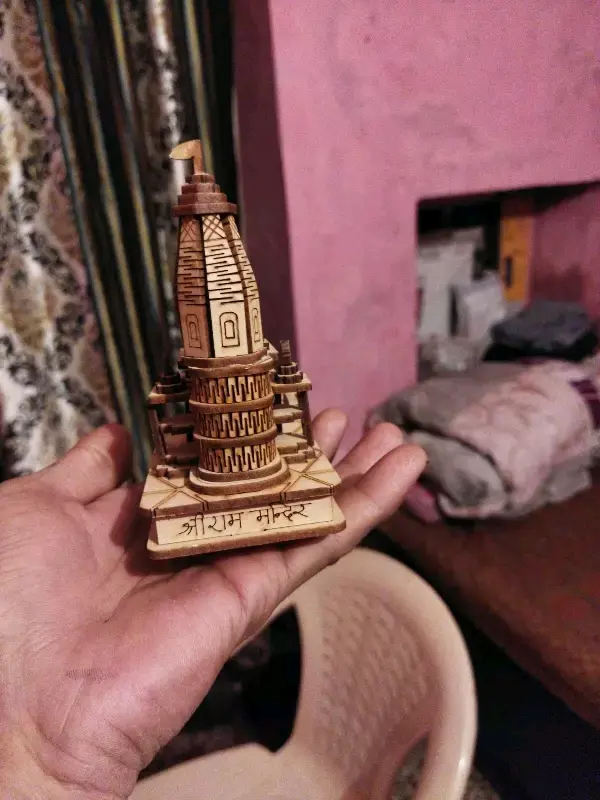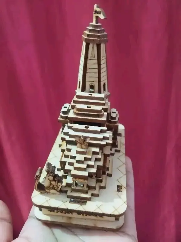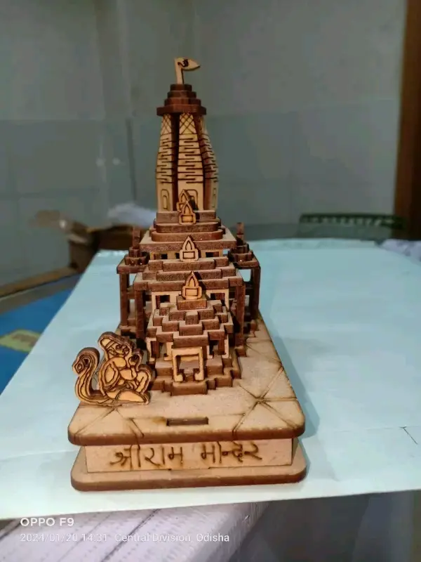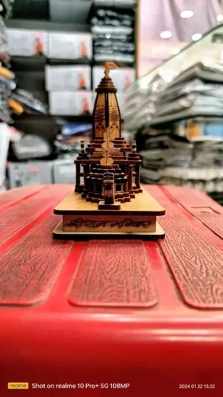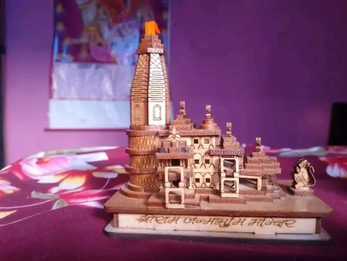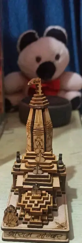 इस 3D लकड़ी के अयोध्या राम मंदिर मॉडल के साथ।