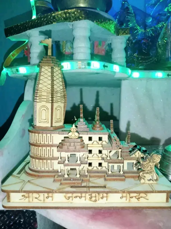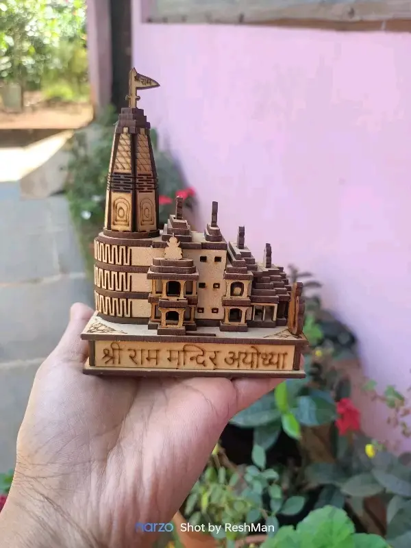 इस 3D लकड़ी के अयोध्या राम मंदिर मॉडल के साथ।
